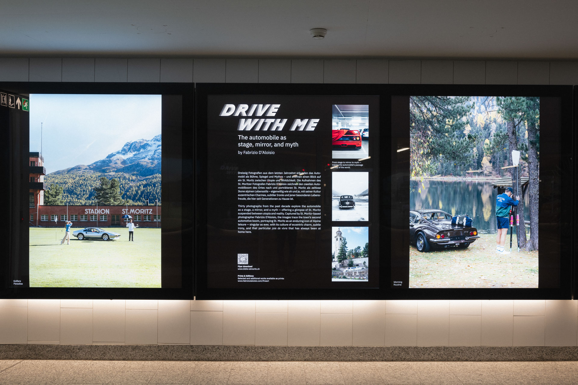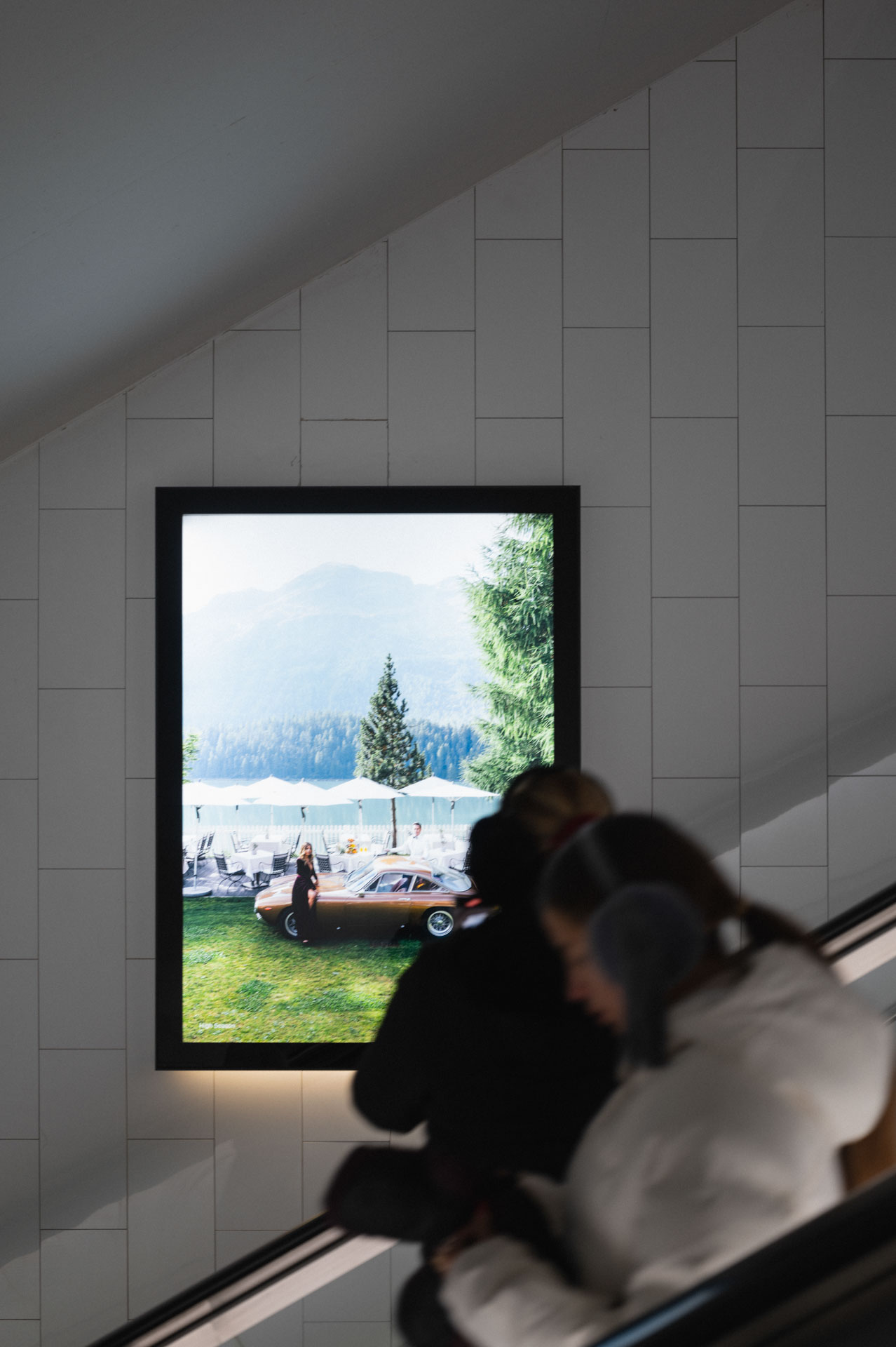 If you look and listen closely, though, the echoes of these vibrations can already be felt throughout the city. The exhibition Drive With Me by Fabrizio D’Aloisio is currently on display at the Design Gallery in St. Moritz. Fabrizio is one of the most influential photographers who has captured the essence of speed and style in the Swiss Alps during The I.C.E. and beyond. For many years, he has documented the extraordinary relationship between St. Moritz and the automotive world. What he has created are not merely car photographs, but true artistic compositions that reflect his vision of automobiles as works of art.